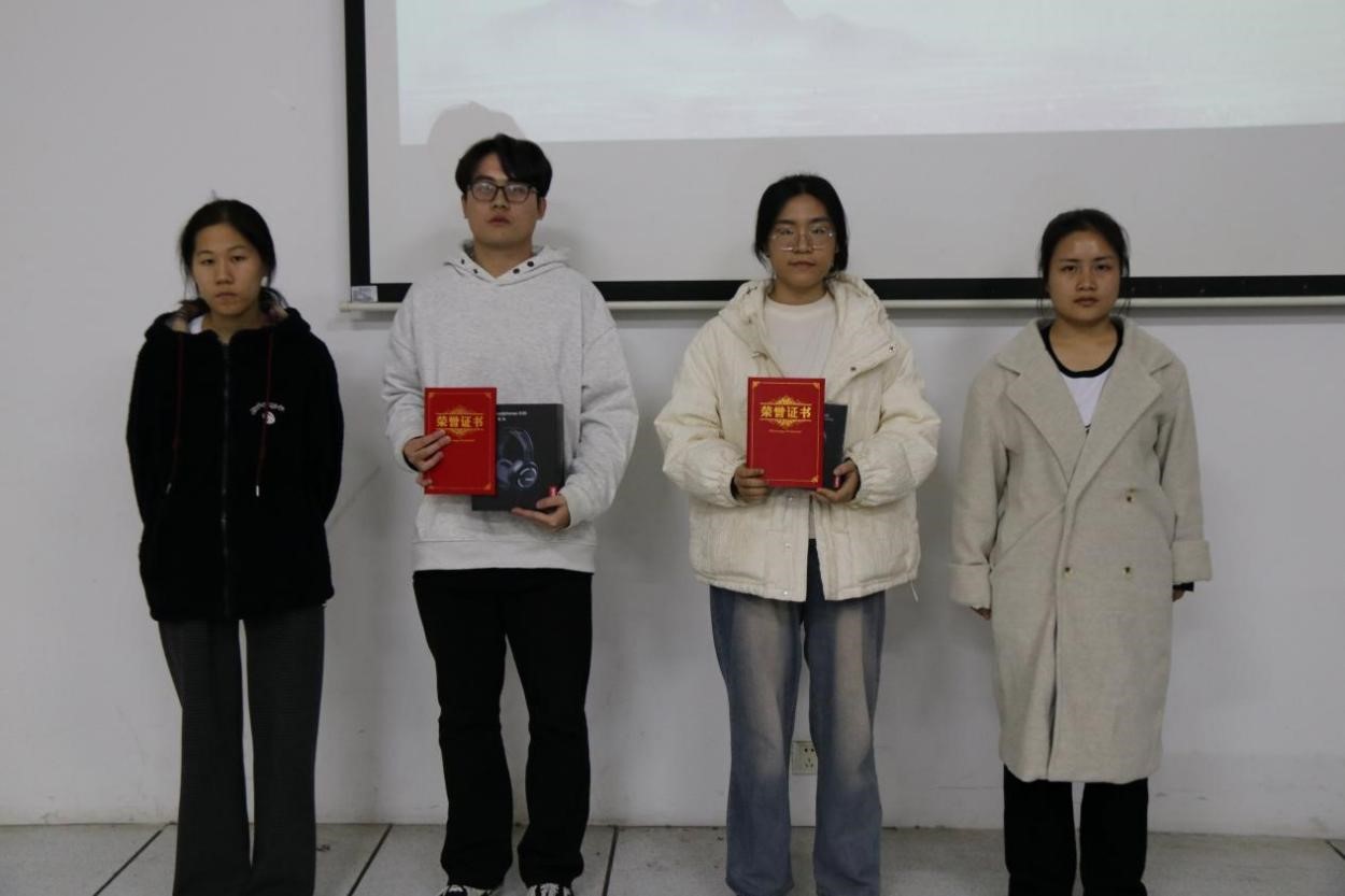 湖南涉外经济学院图书馆“21天阅读打卡活动”从2025年10月27日开始,至11月16日圆满结束,自活动开展以来,吸引了来自不同学院、不同专业的一百多名同学报名参加,打卡范围涉及上百种不同类型、不同题材的书籍。为表彰此次“21天阅读打卡活动"的获奖同学,图书馆学生管理协会于12月17日晚19:30在图书馆303室隆重举行了颁奖仪式。其中,一等奖1名、二等奖2名、三等奖3名及优胜奖4名共10位同学获奖。获奖同学至图书馆303会议室领取相关证书及奖品并合影留念。