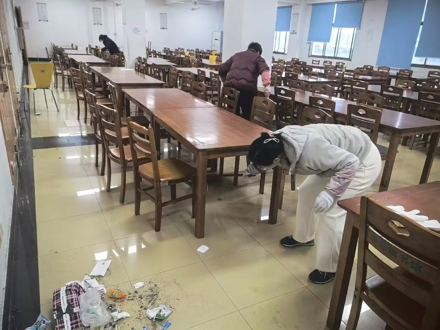 在清理过程中,工作人员始终坚持“以人为本”的原则,一边清理一边耐心查看是否有师生遗漏的重要物品,遇到仍在学习的同学,主动提醒其及时整理个人物品,合理安排离校时间。此次清理工作不仅彻底改善了自修室的环境卫生状况,消除了安全隐患,更体现了图书馆对师生的人文关怀。