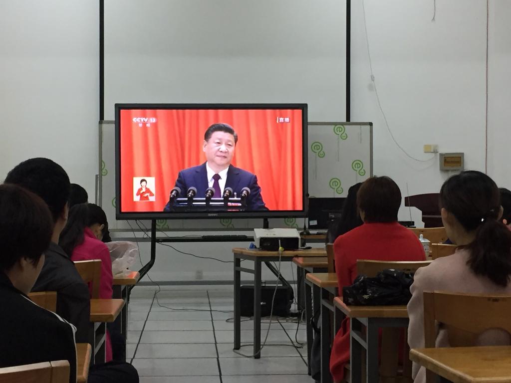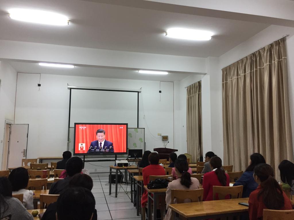2017年10月18日上午九时,图书馆组织全体员工集中收看党的十九大开幕会。听看后,通过“两微一端”等新媒体平台,及时推送大会重要精神、主要理论观点等内容,并依托“三会一课”等形式,广泛组织开展学习讨论。