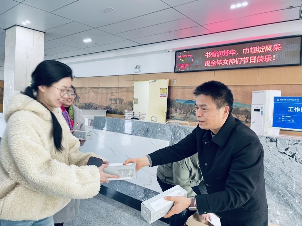 春潮涌动暖三月,巾帼建功绽芳华。在第116个“三八”国际妇女节来临之际,为致敬全馆女职工,彰显女性力量,丰富校园文化生活,3月6日上午,图书馆分工会于3月6日上午组织开展以“书香润芳华,巾帼绽风采”为主题“三八”女神节特别活动。图书馆馆长王昊、副馆长李波亲自送上礼品与祝福。